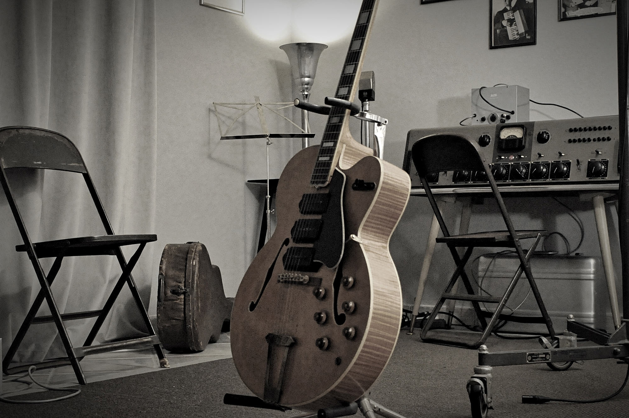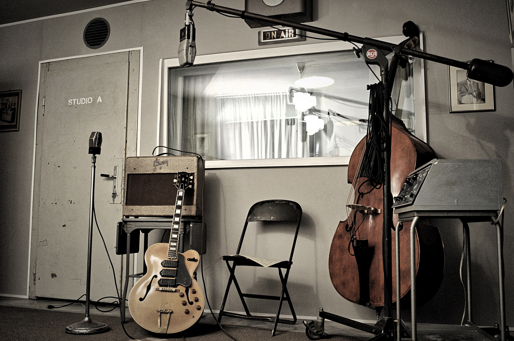 I wanted to recreate this time capsule. I want to feel those times. I researched the photos and looked into the details. "What's this microphone in front of the bass? What did they use? What is behind the window in the recording room? What tape machines did they use? What tapes were used?" I wanted to recreate this; the recording way in the original studios in the '50s, like Chess Records or Sun Records. A small studio. Not Capitol Studios! I want to record 100 percent the original way. In between the gear, there’re no modern signals or electronics.